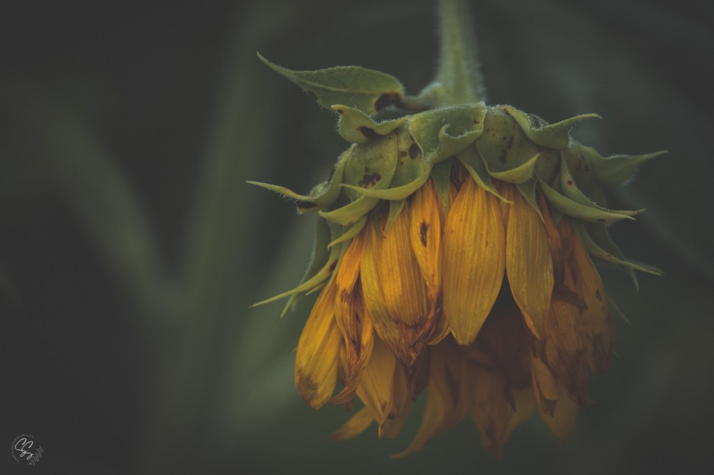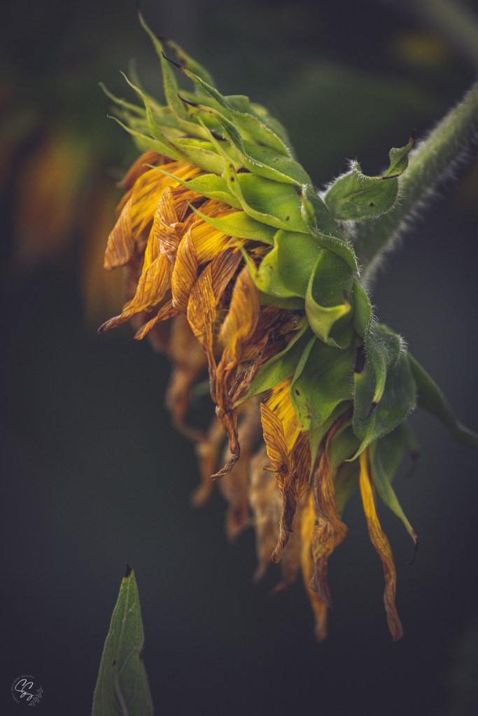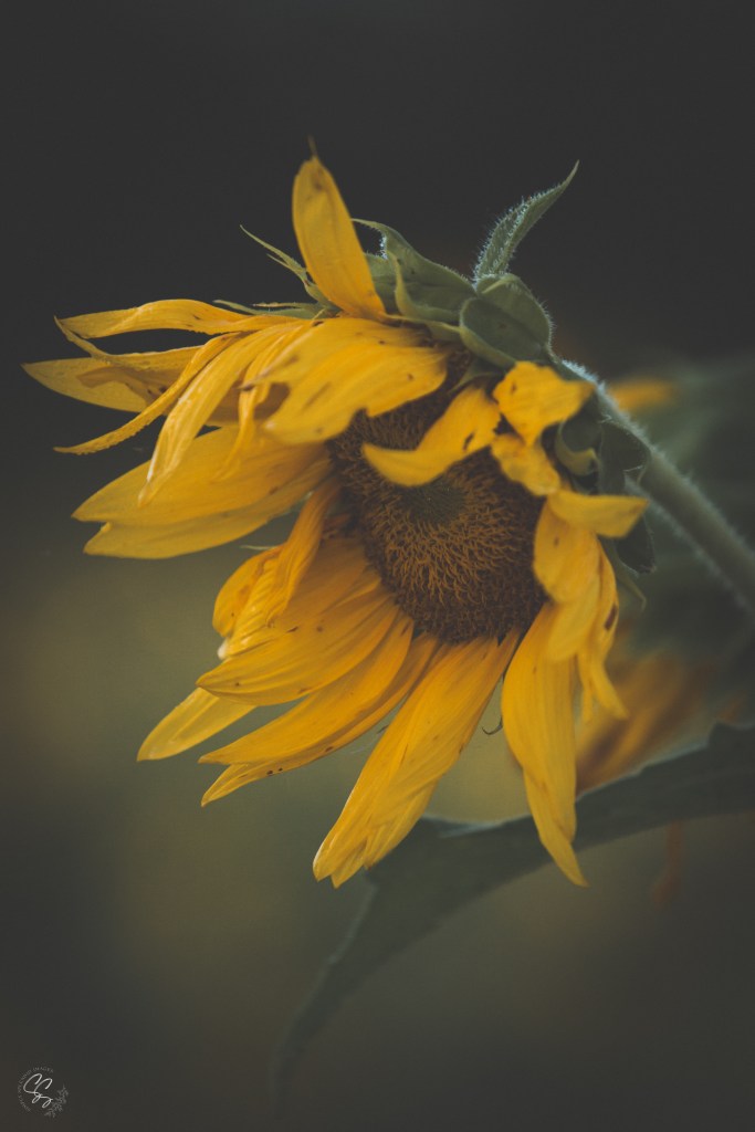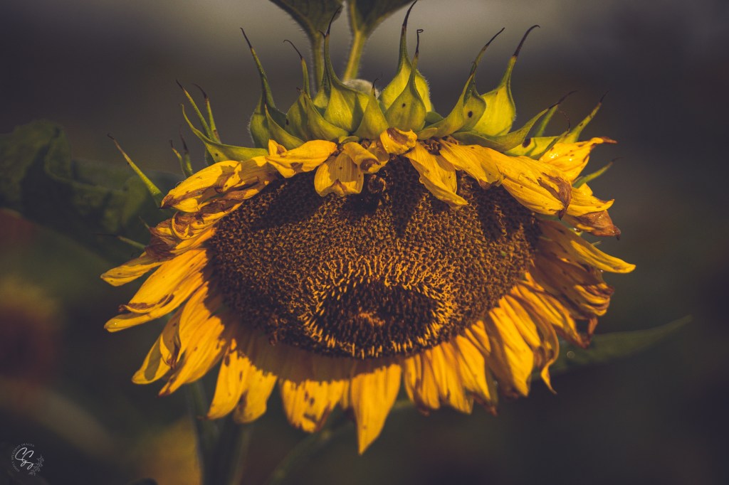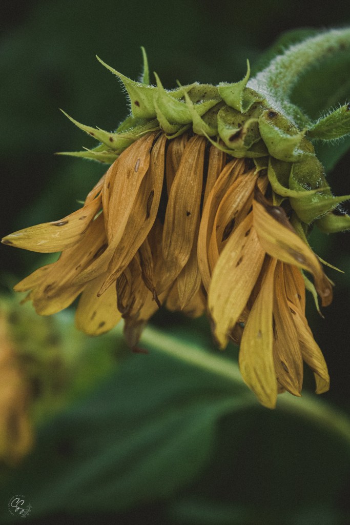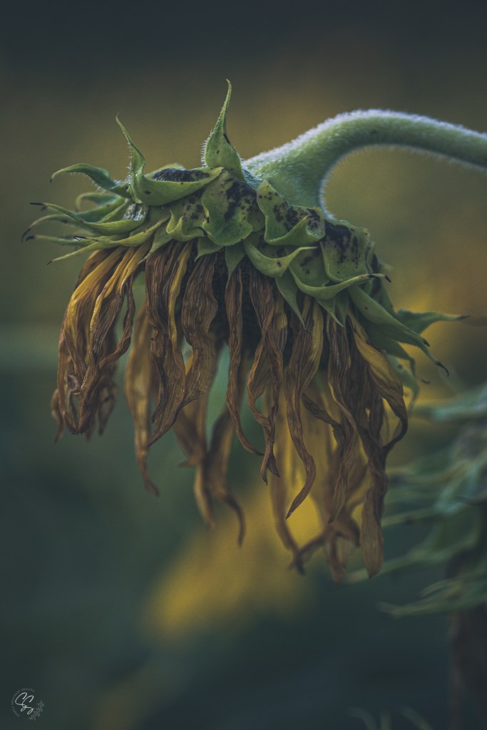 Once in a vibrant garden teeming with life, there stood a sunflower unlike any other. Its once golden petals, now weathered and drooping, whispered a tale of resilience and grace amid adversity.