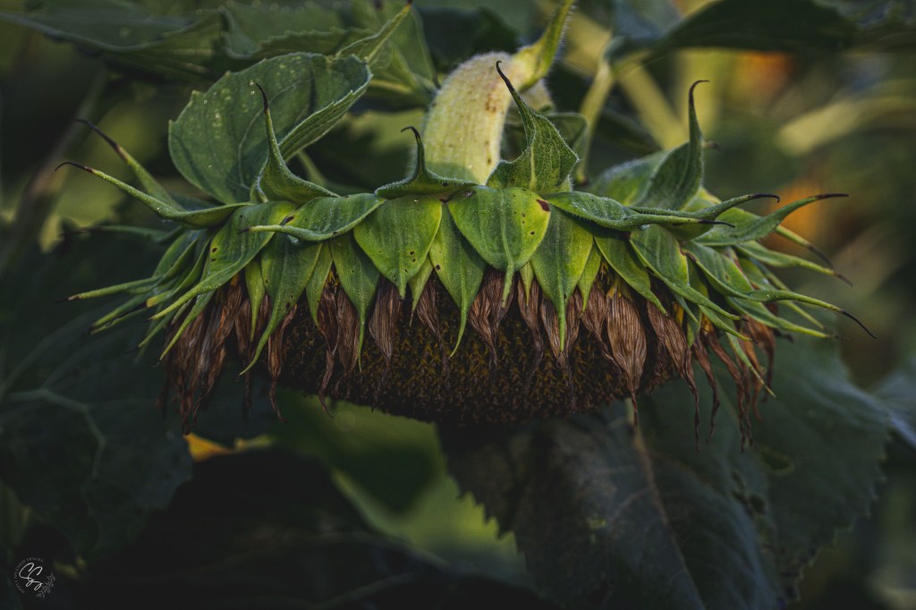 Amidst the lush greenery, this wilted sunflower stood as a symbol of beauty transcending perfection. Its bowed head held a unique allure, drawing in creatures seeking solace in its delicate imperfection. Birds perched upon its sturdy stem, singing melodies of hope as they found refuge in its embrace.