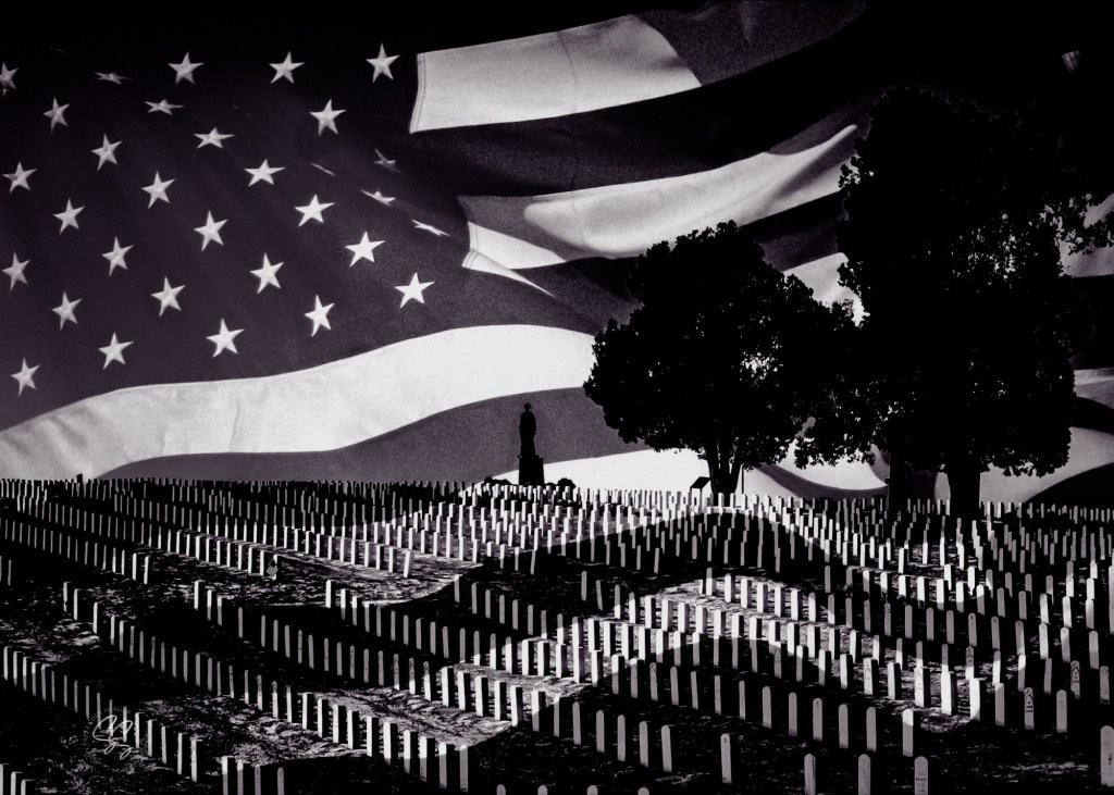 One of the most poignant subjects often captured in black and white is the national cemetery. The stark contrast between the dark shadows and the pure whites creates a solemn atmosphere, paying homage to those who have served. Overlaying these images with flags adds a layer of symbolism, reminding us of the sacrifices made for freedom.